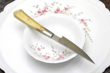 Couteaux Tisseyre a créé un couteau de table original, le couteau "l'as de table", une création, un style. une idée déco pour votre cuisine, un atout majeur pour votre table. Vos invités apprécieront cette attention. Un couteau de table au design unique, agréable à utiliser ou en présentation de table. L'acier inox Alenox 18cr à été retenu pour ces qualités. Vente à l'unité, assortissez votre service suivant vos désirs. Dessin et modèle déposé à l'INPI. Attention, ces couteaux sont disponibles à la vente exclusivement dans ma boutique à La Bastide sur l'Hers ou sur mon site de vente en ligne couteaux-tisseyre.com.