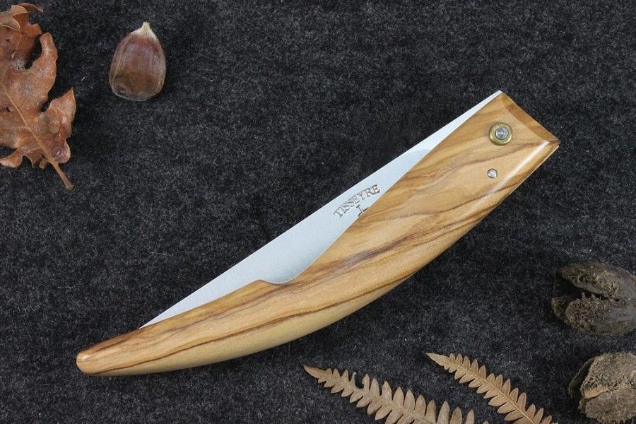 - Le manche monobloc en bois d'olivier est un matériau naturel et vivant, afin de préserver la souplesse du bois, huiler le manche de temps en temps pour le nourrir. Il peut arriver qu'avec le temps, en séchant, un ré-ajustage du sertissage du rivet soit nécessaire.