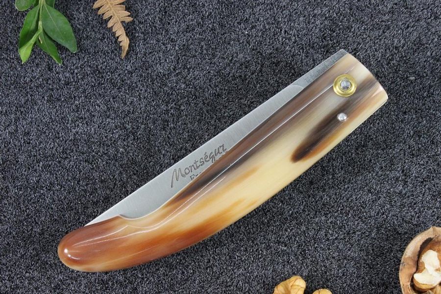 Couteau de poche traditionnel Montségur corne jaspée blonde acier xc75