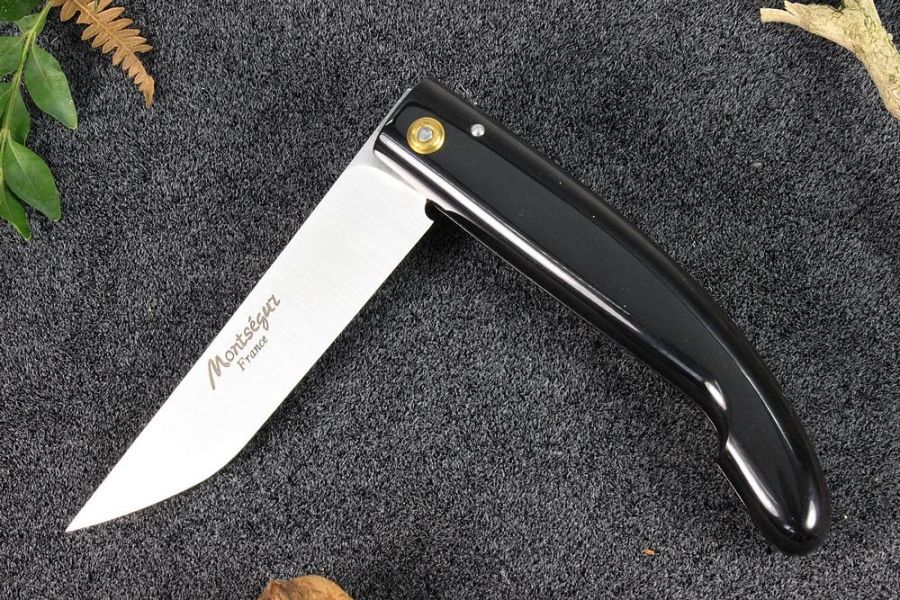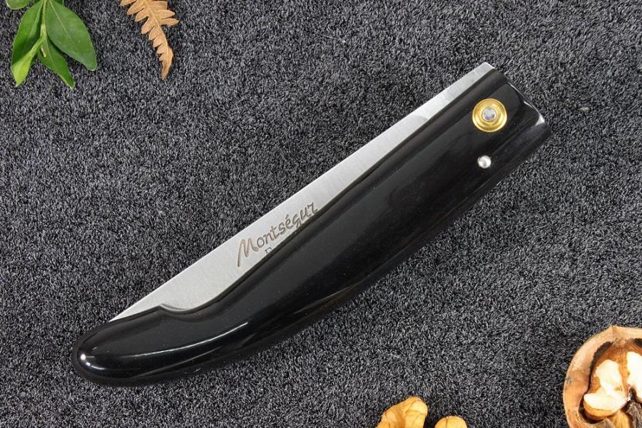 Couteau de poche traditionnel Montségur corne noire acier carbone