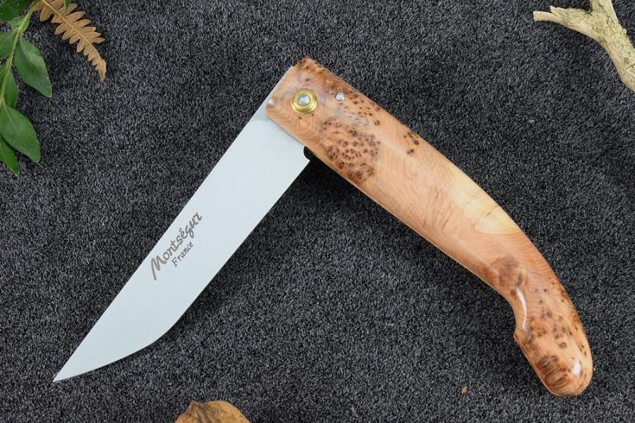 Couteau de poche traditionnel Montségur loupe de cade acier carbone