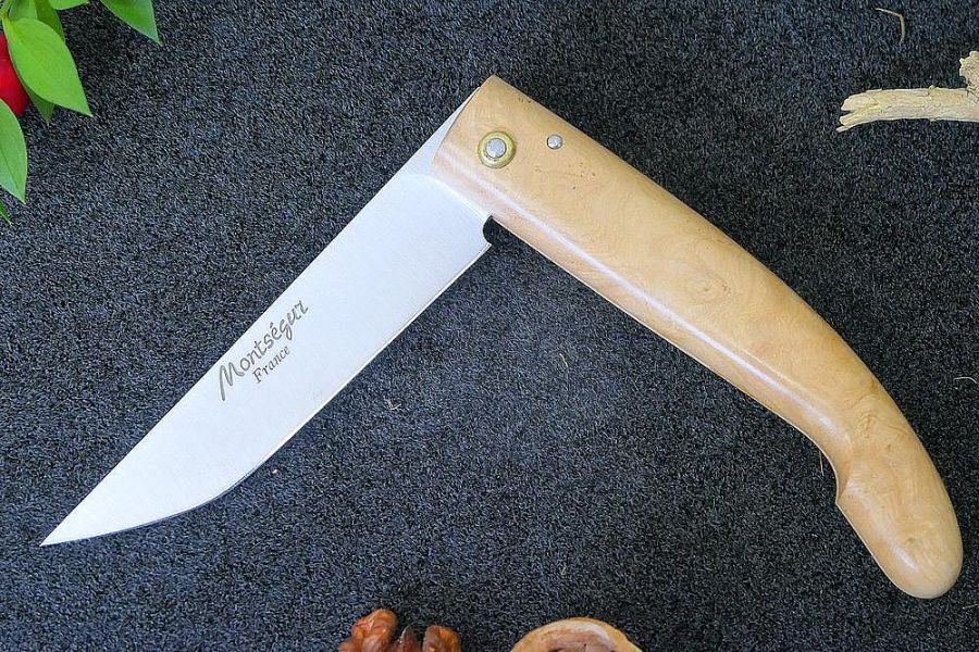 Couteau de poche traditionnel Montségur ronce de frêne acier carbone xc75