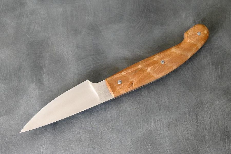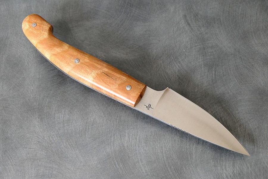 - Il est préférable d'affûter régulièrement son couteau, même s'il coupe encore, un passage rapide sur une pierre naturelle redonnera à votre couteau un tranchant optimal.