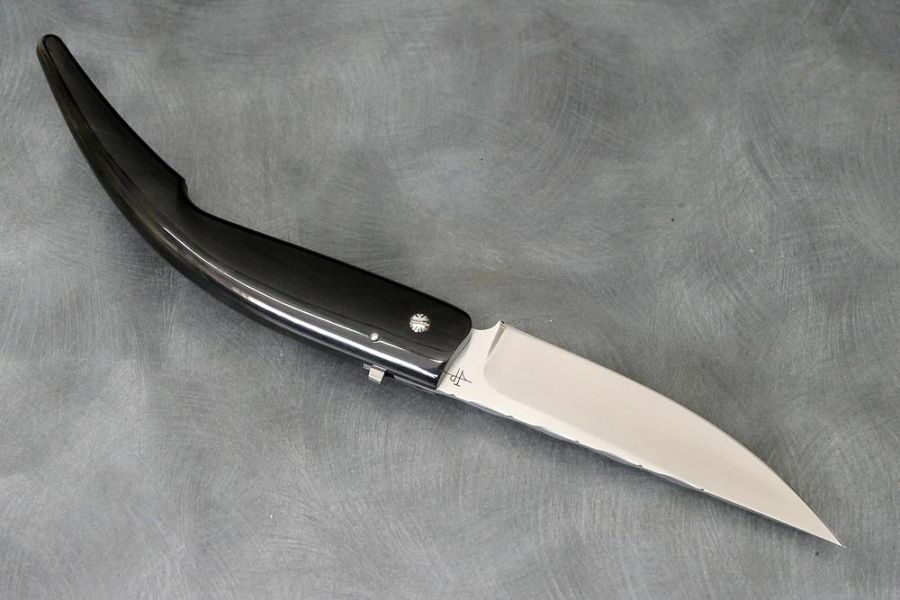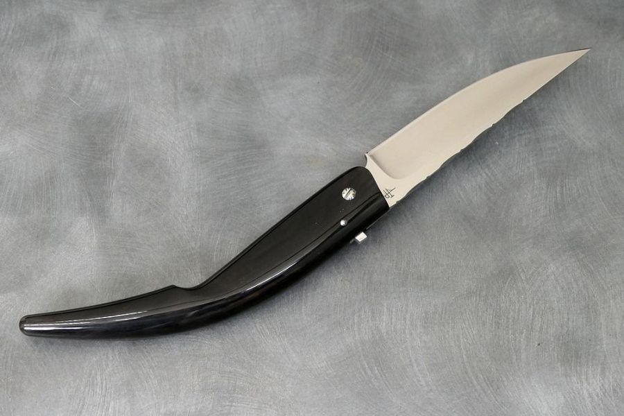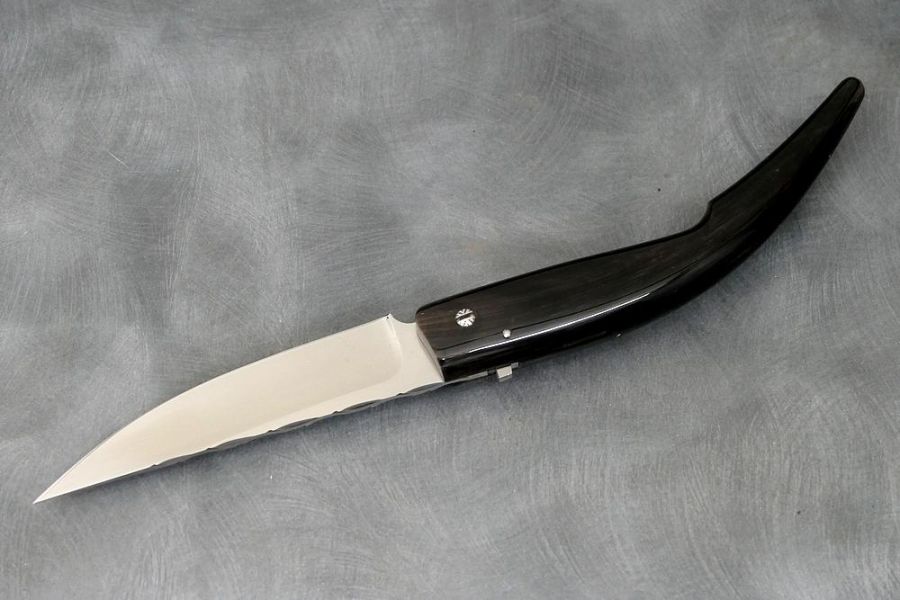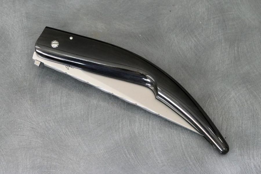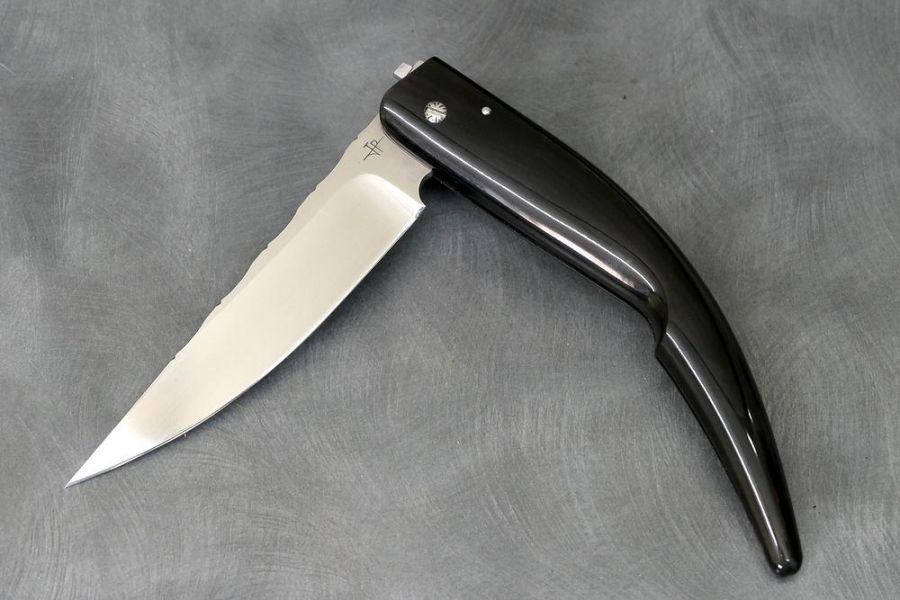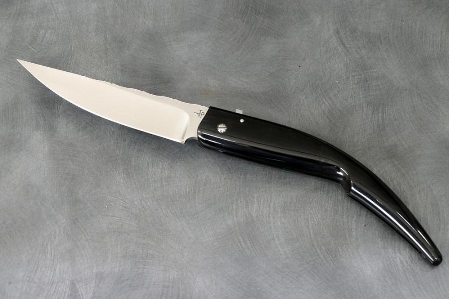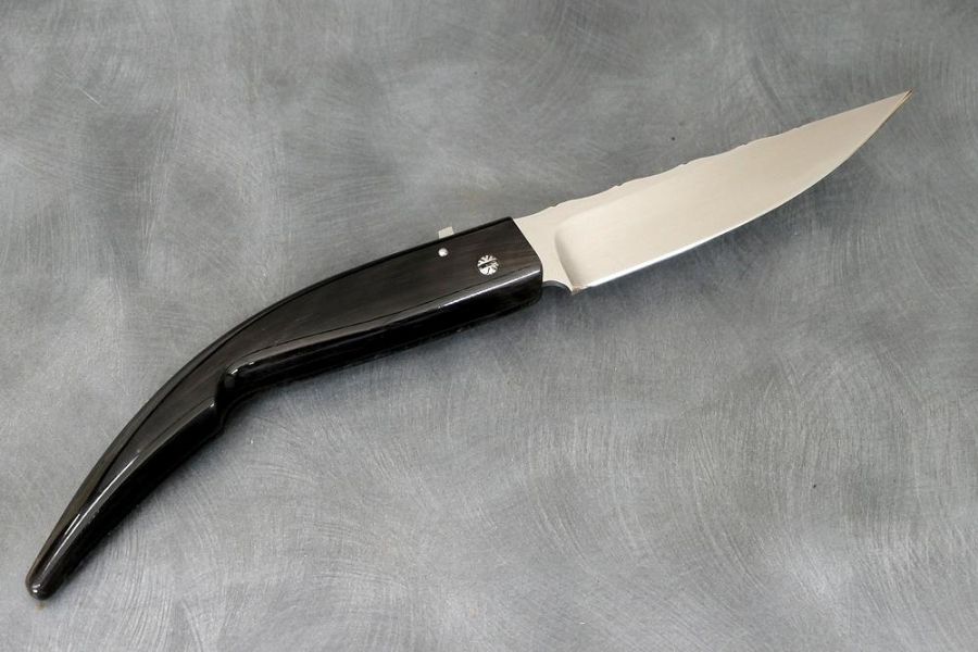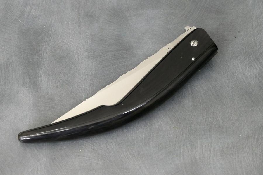 Couteau pliant Plantaurel corne noire lame acier damas inox